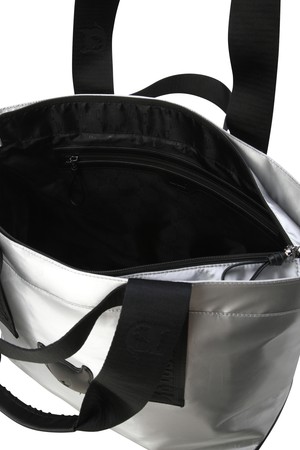 - 글로시한 소재로 스타일리시한 무드가 느껴지는 토트백.