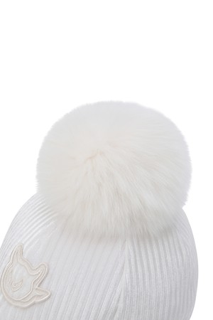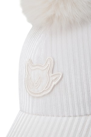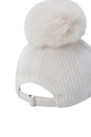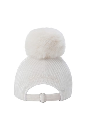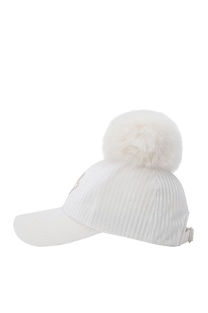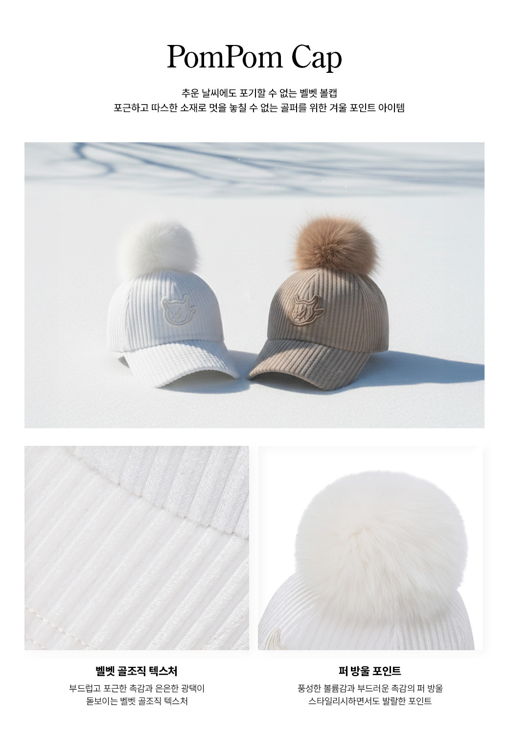 퍼 방울이 돋보이는 세련된 여성 볼캡.