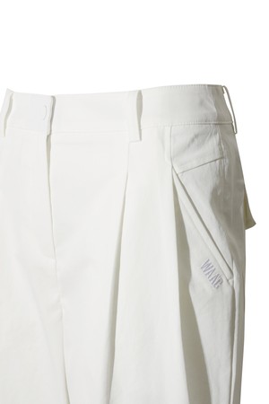 - 투턱을 적용한 테이퍼드 핏 라인의 팬츠.