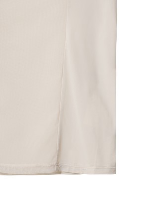 - 라운드 넥 디자인에 적당한 핏 라인으로 깔끔한 실루엣을 연출함.