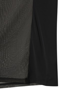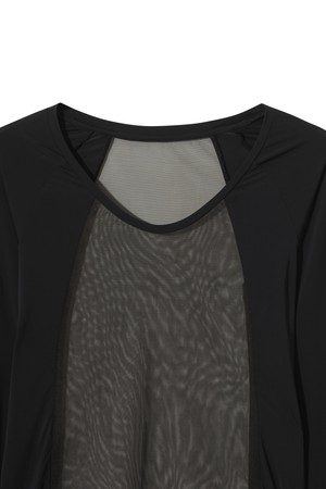 - 몸판 센터 부분에 잔조직 메쉬 소재를 블랜드한 베이스 레이어.
