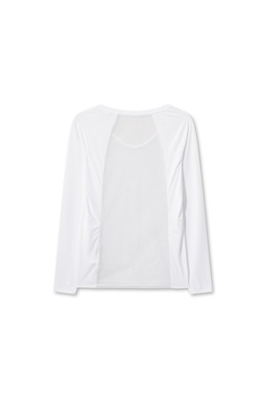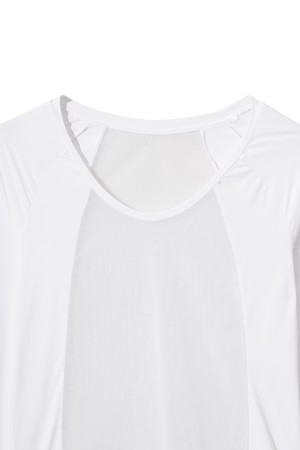 - 몸판 센터 부분에 잔조직 메쉬 소재를 블랜드한 베이스 레이어.