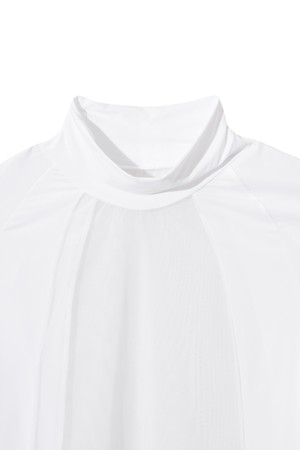 - 하이넥 디자인에 래글런 슬리브 라인으로 적당한 핏 연출함.