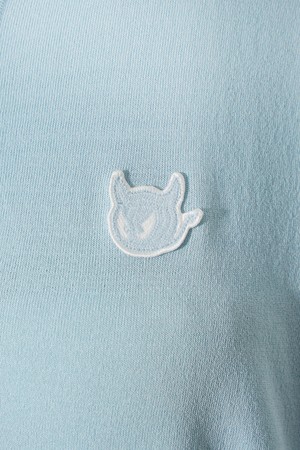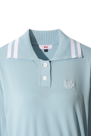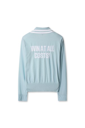 - 컬러 배색 티핑 빅 카라 디자인과 등 부분의 슬로건 인타샤로 포인트를 더해줌.