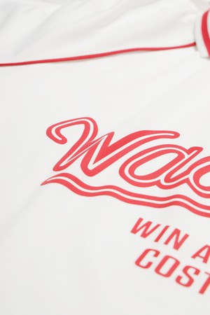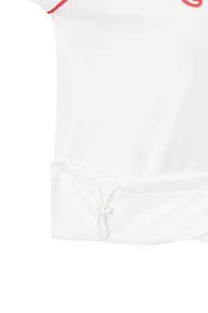 - 카라와 래글런 소매의 배색 컬러가 포인트로 밑단 스트링 통해 핏 조절 가능.