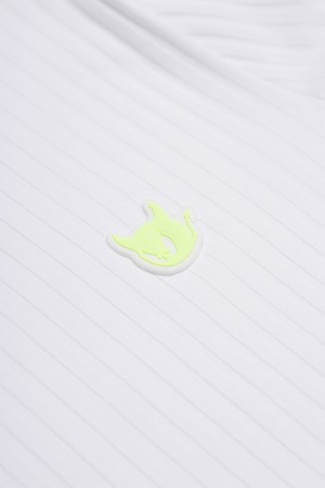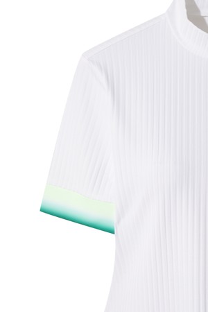 - 소매단 그라데이션 컬러 배색이 돋보이는 티셔츠.