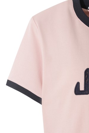 - 네크라인과 소매단의 컬러 라인으로 포인트를 준 티셔츠.