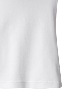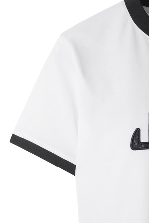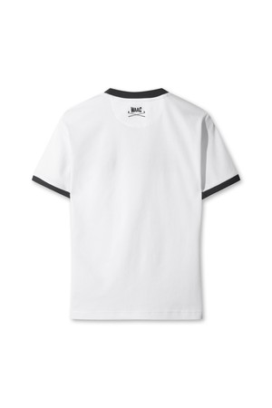 - 네크라인과 소매단의 컬러 라인으로 포인트를 준 티셔츠.