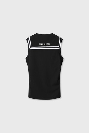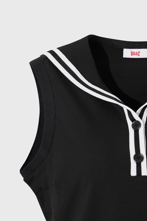 - 앞 단작부터 세일러 카라까지 이어지는 배색 테이프로