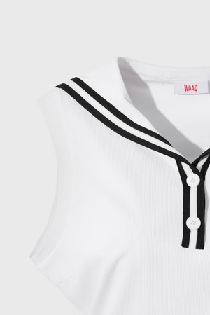 - 앞 단작부터 세일러 카라까지 이어지는 배색 테이프로