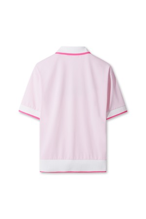 - 부분 컬러 배색 립 조직을 매치한 티셔츠.
