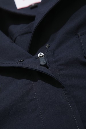 - 카라넥과 풀 지퍼 여밈으로 단정한 아웃핏 연출.