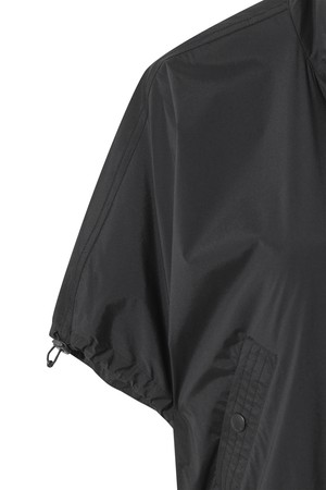 - 소매에 내장된 스트링으로 핏 조절이 용이한 바람막이 반팔 자켓.