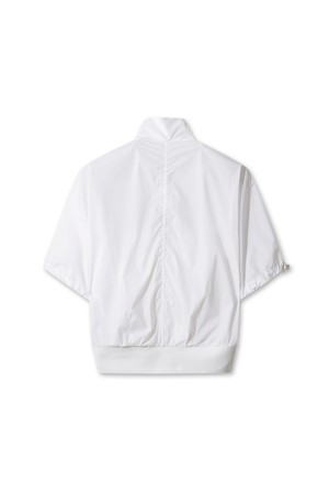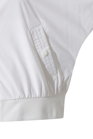 - 소매에 내장된 스트링으로 핏 조절이 용이한 바람막이 반팔 자켓.