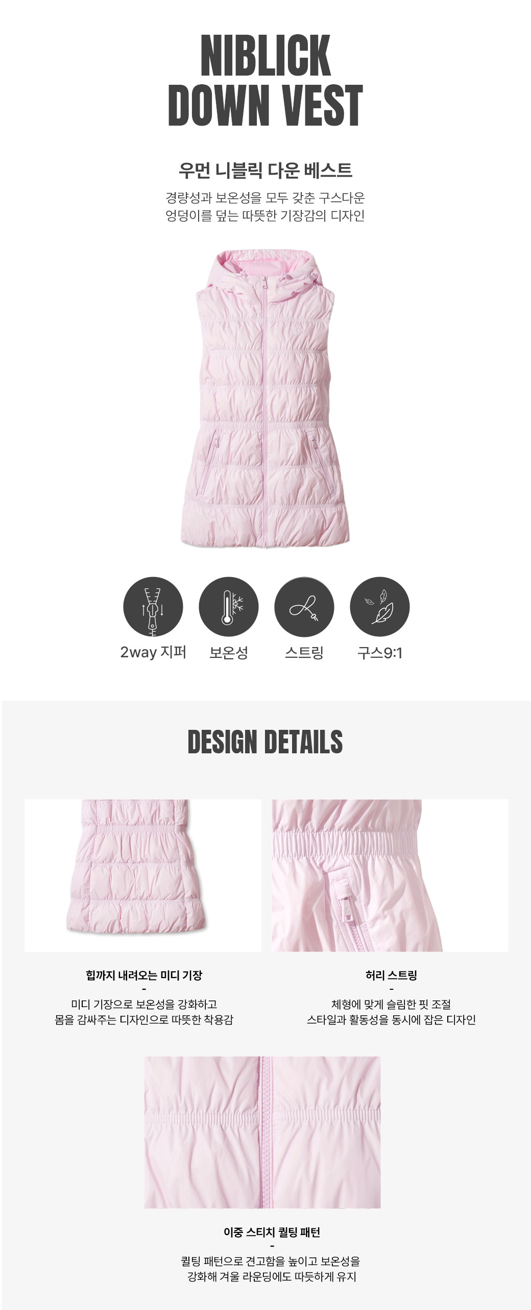 슬림한 라인으로 세련된 실루엣을 완성하는 여성 중기장 다운 베스트