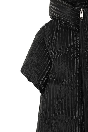 벨벳처럼 부드러운 텍스처가 돋보이는 스트레치 원단의 패딩 아노락 베스트.