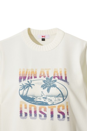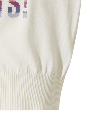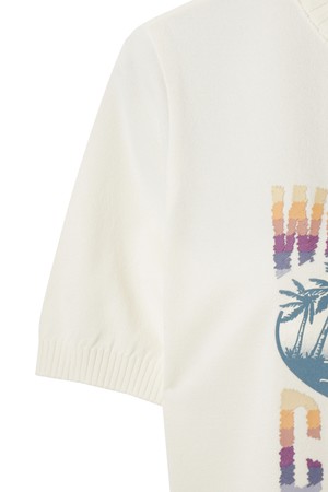 - 앞판의 팜트리 패턴으로 포인트 멋을 더해준 반팔 스웨터.
