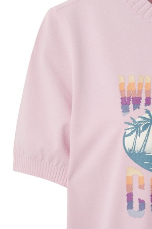 - 앞판의 팜트리 패턴으로 포인트 멋을 더해준 반팔 스웨터.