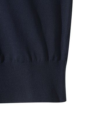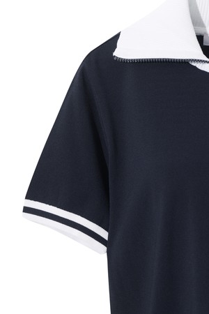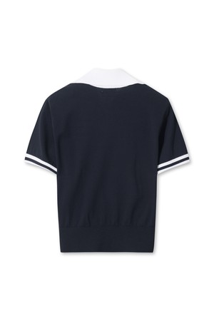- 와이드한 배색 칼라 디자인이 돋보이는 반팔 스웨터.