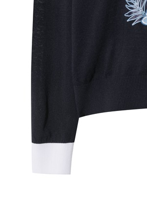 - 앞판의 팜트리 & 로고 장식이 돋보이는 스웨터.