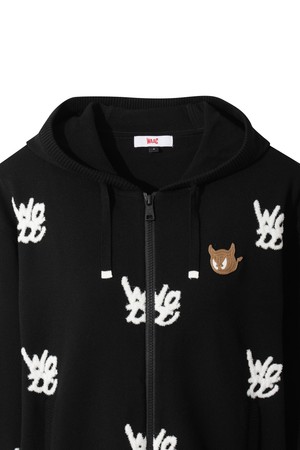- 전판 입체적인 로고 패턴이 돋보이는 집업 후드.