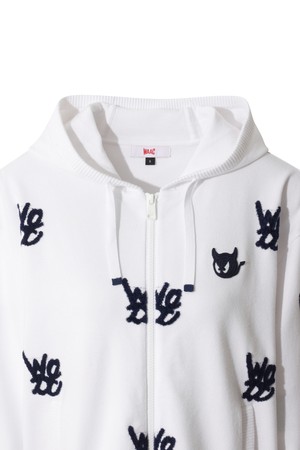 - 전판 입체적인 로고 패턴이 돋보이는 집업 후드.