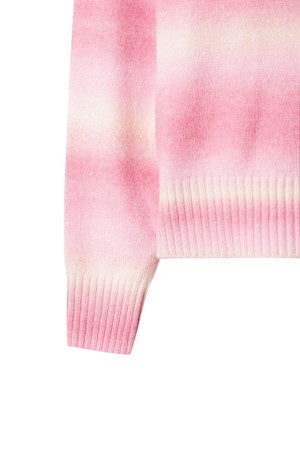 핑크 스트라이프 패턴의 라운드넥 스웨터