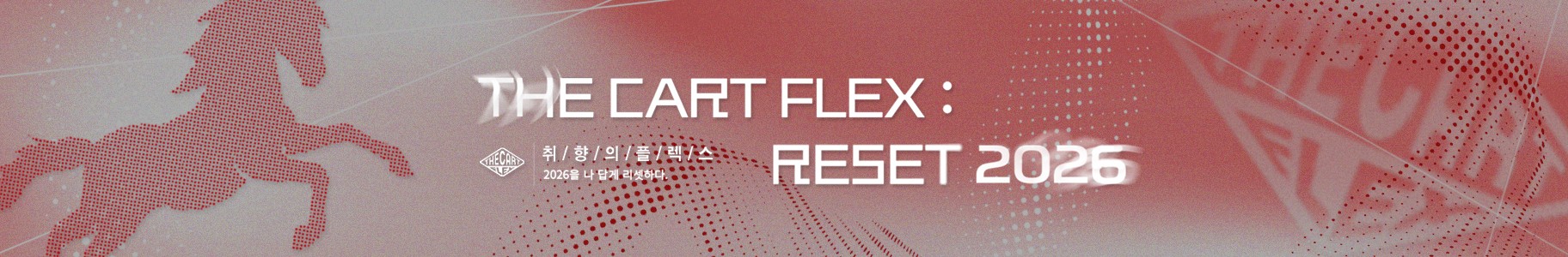 THE CART/FLEX : RESET 2026새해 시작을 알리는 특별한 혜택 ~89% + 15% 쿠폰팩MOVE YOUR 2026새해 첫 다짐과 함께 나만의 스포츠 MBTI 찾기![ SELECTED ] SHOP더카트에서 선별한 감도 높은 셀렉티드 아이템